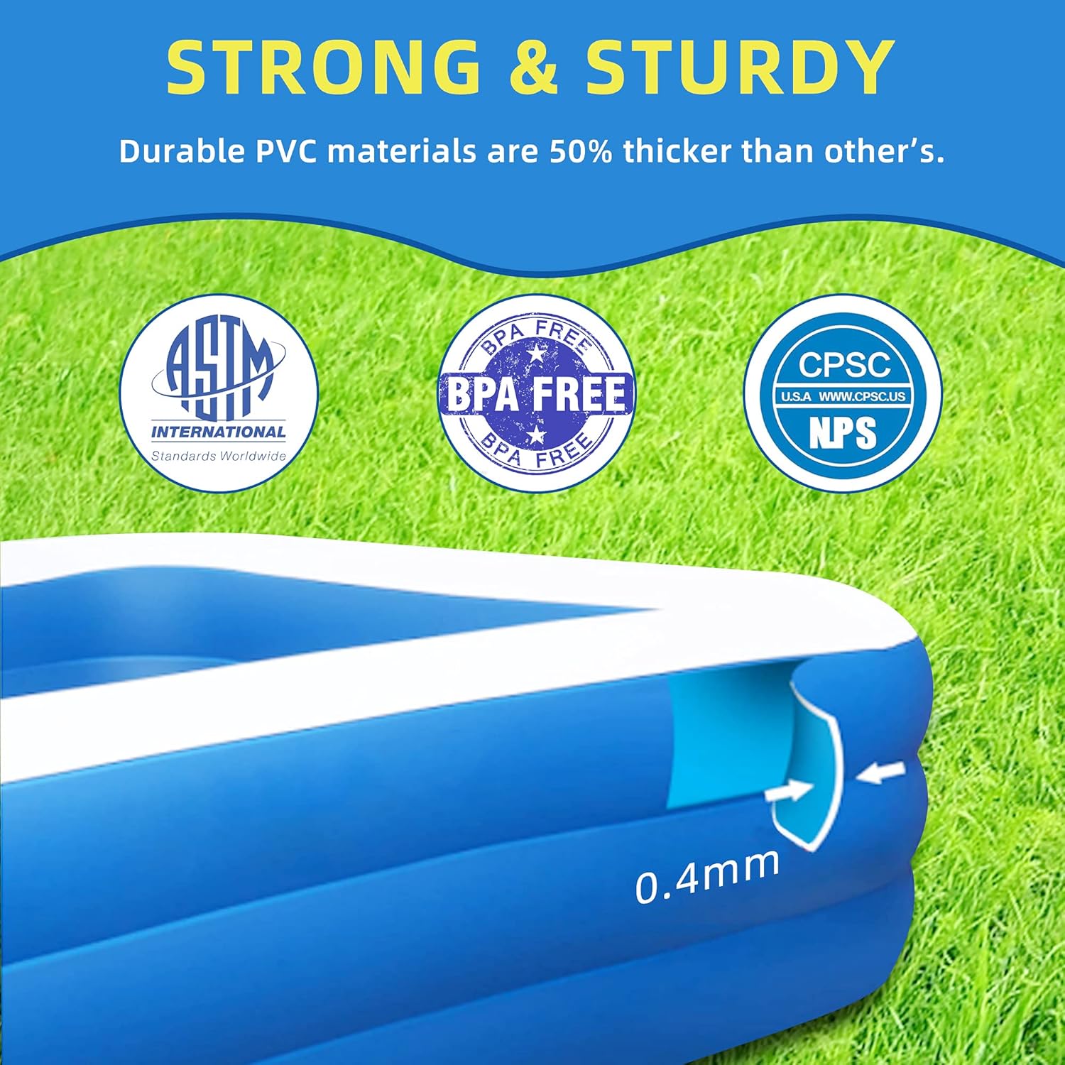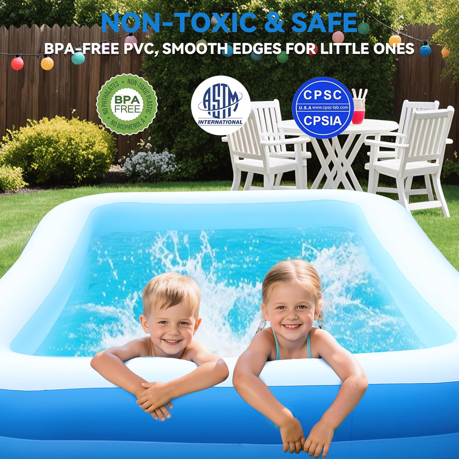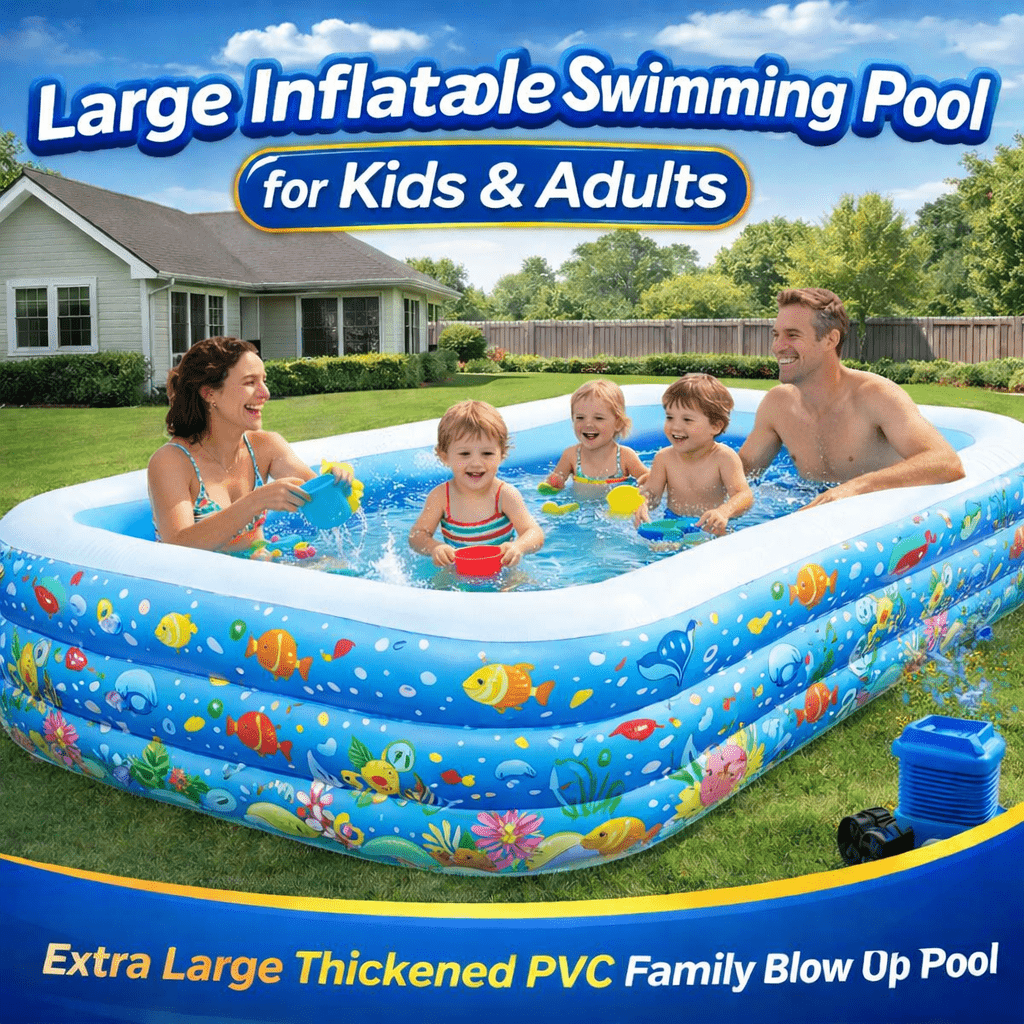 এই Large Inflatable Swimming Pool শিশু থেকে শুরু করে বড়দের জন্যও উপযুক্ত। শক্ত ও মোটা PVC ম্যাটেরিয়াল দিয়ে তৈরি হওয়ায় এটি টেকসই, নিরাপদ এবং দীর্ঘদিন ব্যবহারযোগ্য।